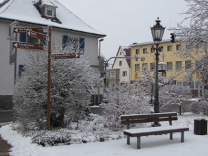 Im Anschluss an den Empfang im Rathaus bei Bürgermeisterin Gabriele Winter (Bildmitte mit Javier Arza vom Instituto Rey Don Garcia und Mercedes Pérez, Gerhart-Hauptmann-Schule Griesheim) stellten sich die spanischen Gäste aus Najera – La Rioja mit ihren deutschen Gastgebern, Schüler der 9. Gymnasialklassen der GHS, zum Gruppenbild vor dem Rathaus auf. Die spanischen Gäste finden „Griesheim schön, aber kalt!“ und erleben nur selten Schnee in ihrer spanischen Heimat.
