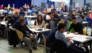 Fünf Schüler des Mathe-Leistungskurses und sechs Schüler aus Mathe-Grundkursen ließen es sich nicht nehmen am Samstag, den 7. März 2015 am Tag der Mathematik, der bei der Firma Merck ausgerichtet wurde, teilzunehmen. Um halb zehn nach der Begrüßung ging es auch schon los mit einem Gruppenwettbewerb; die Aufgaben drehten sich um Logik und beschäftigten sich mit Mittelstufenthemen. Zum Teil mussten wir ziemlich überlegen, um die Aufgaben lösen zu können. Danach ging es weiter mit einem Einzelwettbewerb, bei dem wir einzeln an den uns gegebenen Aufgaben gearbeitet haben.