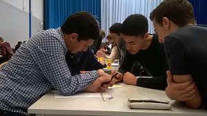 Um ca. zwölf Uhr war Mittagspause. Nachdem wir uns gestärkt hatten, ging es weiter mit einem „Hürdenlauf“. Wir durften wieder in unseren Gruppen arbeiten, bekamen aber immer erst die nächste Aufgabe, wenn die vorherige bearbeitet und abgegeben wurde. Bei all diesen verschiedenen Wettbewerben gab es eine Zeitvorgabe, die man einhalten musste, doch diesmal war sie noch kürzer.
