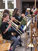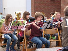 Zu Beginn der diesjährigen Hessens-Bands-on-Tour musizierten die Bläserklassenschüler des Jahrgangs 6 der GHS am Freitag, 29. Mai zusammen mit den befreundeten Bläserklassen der Ernst-Reuter-Schule II aus Frankfurt und dem Wolfgang-Ernst-Gymnasium aus Büdingen bei einem Open-Air-Konzert unter dem Glockenturm der Melanchthongemeinde in Griesheim.