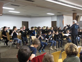 Neben Ursula Tilsner betreut Sabine Köbler seit vielen Jahren die musikalische Ausbildung der GHS-Bläser. Sie hatte für den Solopart der Griesheimer die Stücke „Scooby Doo“, Raiders March“ und „Hey Baby“ ausgewählt und unter ihrem Dirigat zeigten die jungen Griesheimer Nachwuchsmusiker, was sie sich seit etwas mehr als eineinhalb Schuljahren auf ihren Instrumenten erarbeitet haben.