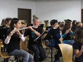 Unter der Leitung von Sabine Meyer-Hermann musizierten Ende Februar die 6. Bläserklasse der GHS mit den Schüler und Schülerinnen der Bläserklasse Schuldorf Bergstraße. Die Schulen im Landkreis kooperieren seit sieben Jahren.