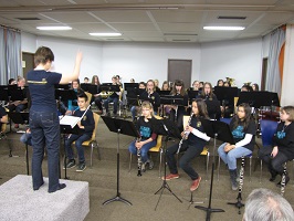 Neben Ursula Tilsner betreut Sabine Köbler seit vielen Jahren die musikalische Ausbildung der GHS-Bläser. Sie hatte für den Solopart der Griesheimer die Stücke „Scooby Doo“, Raiders March“ und „Hey Baby“ ausgewählt und unter ihrem Dirigat zeigten die jungen Griesheimer Nachwuchsmusiker, was sie sich seit etwas mehr als eineinhalb Schuljahren auf ihren Instrumenten erarbeitet haben.
