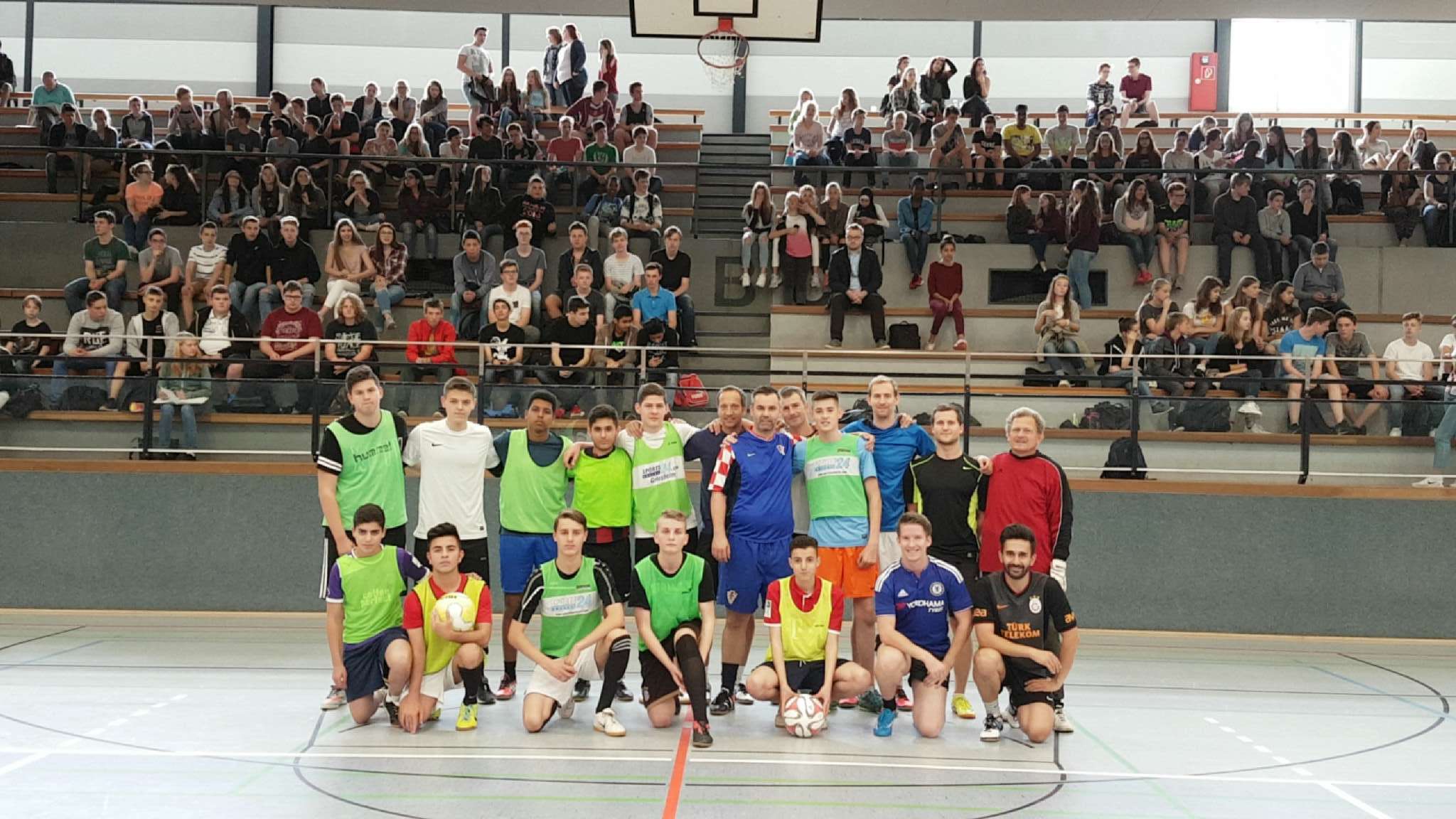 Am 05.07.2016 fand im Rahmen der Mottowoche der Abgangsklassen ein Fußballspiel statt, in dem sich eine Auswahl der Schüler aus den Abgangsklassen einer Auswahl von Lehrern gegenüberstand. Für das Spiel waren alle Jahrgangstufen der Klassen 8-10 freigestellt, so dass eine großartige Kulisse in der Großsporthalle entstand. Angefeuert durch diese Kulisse fand ein anstrengendes und sehr faires Spiel statt, welches letztendlich die Lehrerauswahl mit einem 3-1 für sich entscheiden konnten.
