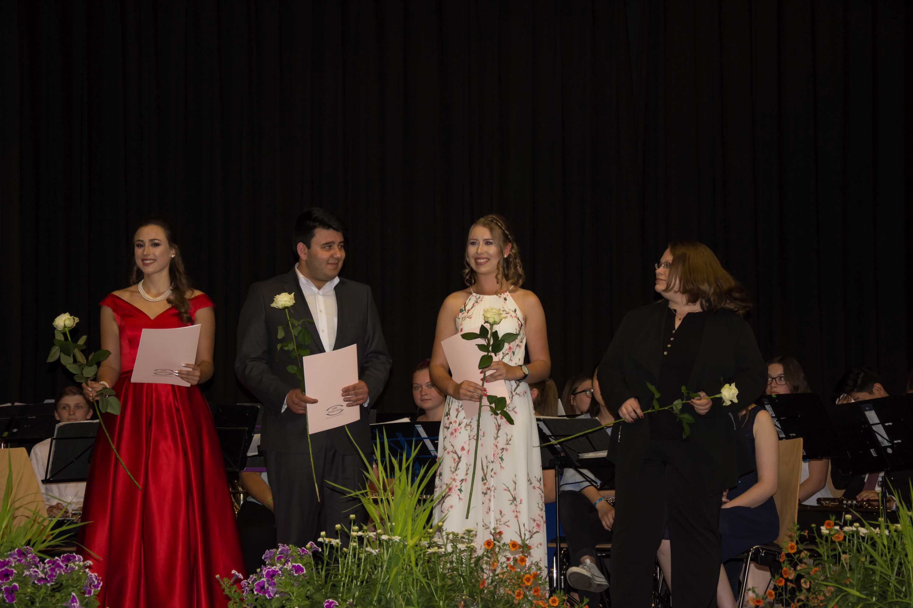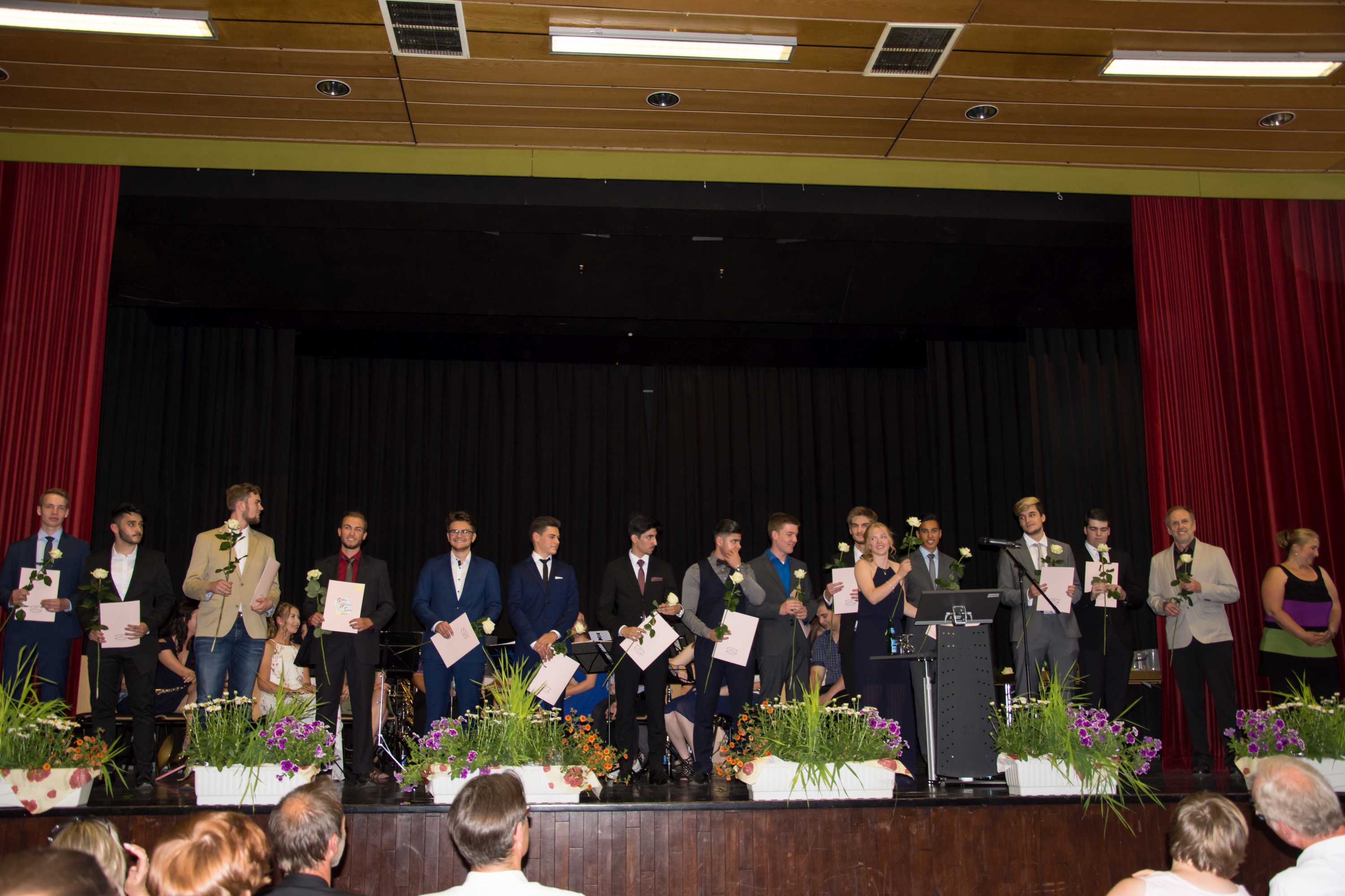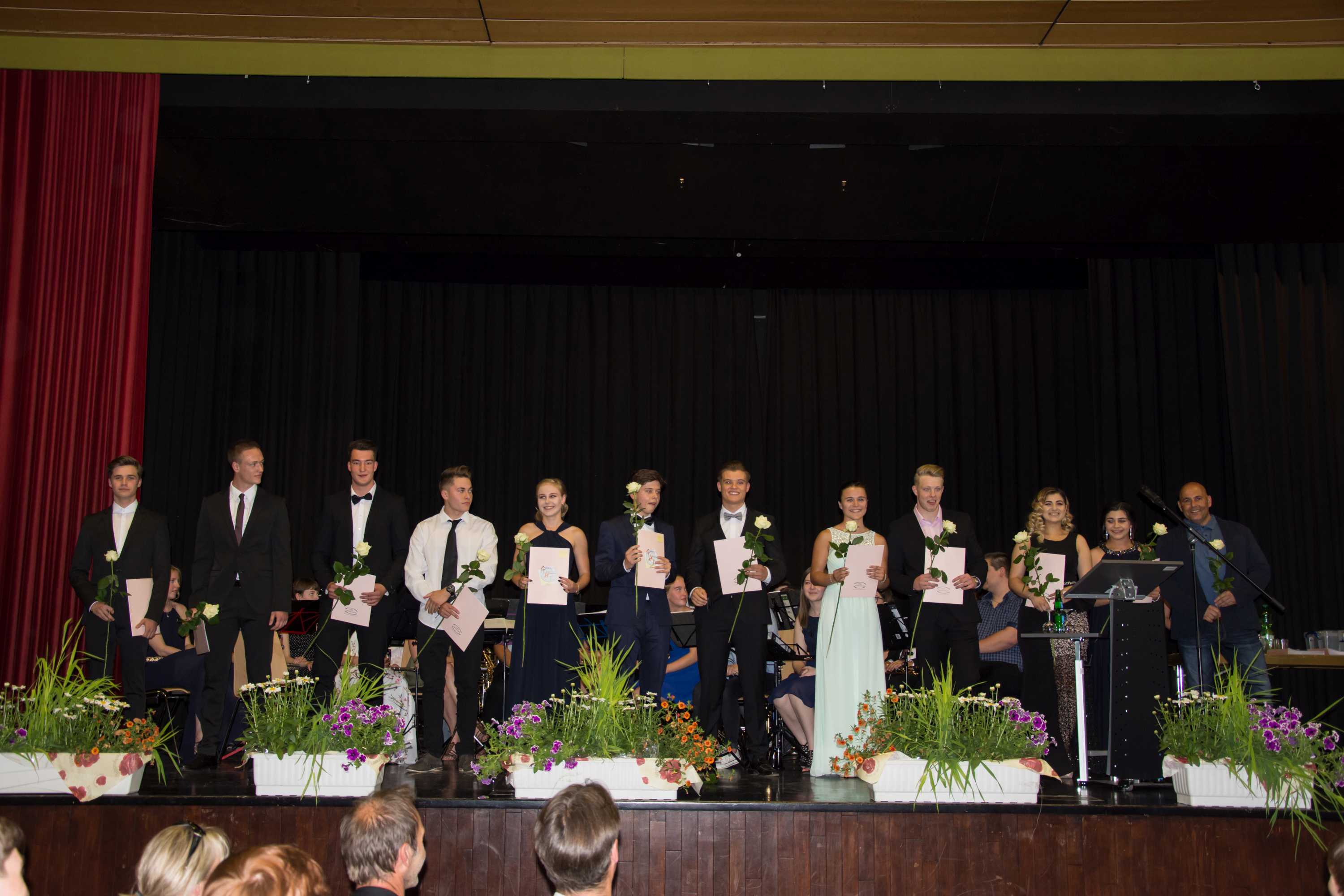 Nacheinander wurden alle Abiturientinnen und Abiturienten mit ihren Tutorinnen und Tutoren zu selbstgewählter Musik auf die Bühne gerufen, um die Zeugnisse zur Hochschulreife entgegenzunehmen. Musikalisch rahmte die Big Band der GHS die Zeremonie äußerst professionell ein.