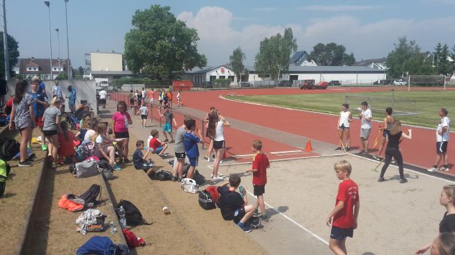 Bei dann endlich angenehm-sommerlichen Temperaturen und Sonnenschein gaben die Schülerinnen und Schüler ihr Bestes, und es wurden sowohl tolle Wettkämpfe mit sportlichen Spitzenleistungen, als auch ein Sportfest, das vielen einfach nur Spaß an der Bewegung vermittelte und einen sportlichen Vormittag bescherte ?! An zwei Tagen haben somit vier Jahrgänge (5-8) mit ca. 730 Schülern ihr leichtathletisches Können im Laufen, Werfen und Springen gezeigt.