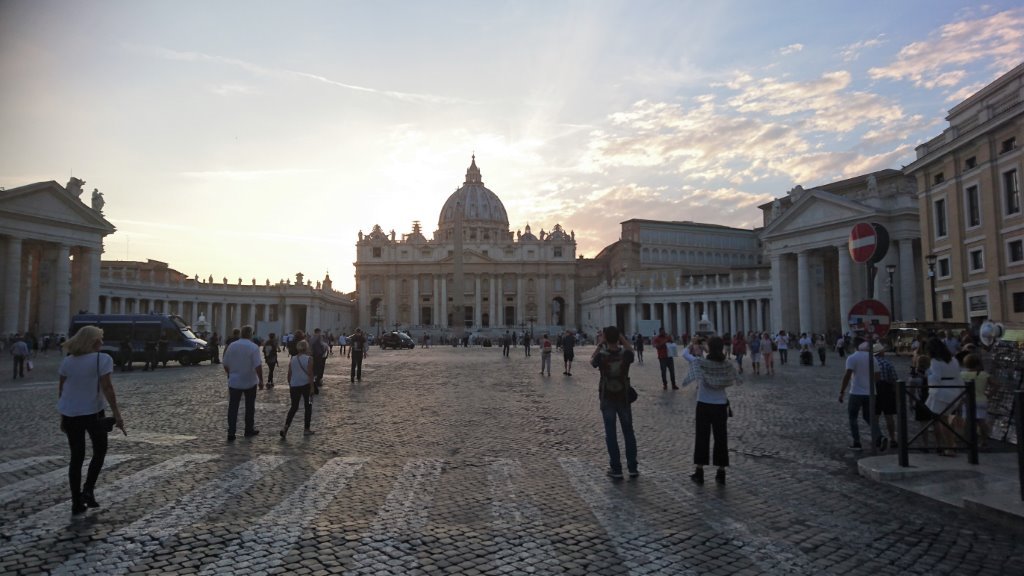 In der sogenannten „ewigen Stadt“ angekommen, fuhren wir vom Flughafen Rom-Fiumicino mit einem Bus zu unserer Unterkunft Camping Village Roma in Aurelio, einem Außenbezirk Roms. Nach zeitlichen Verzögerungen, die manche durch das Einkaufen von Lebensmitteln vom nahegelegenen Supermarkt überbrückten, konnten wir unsere Bungalows beziehen und uns für den ersten Programmpunkt unserer Fahrt, dem Besichtigen des Petersdoms, vorbereiten. Den Vatikanstaat selbst sowie andere Orte konnten vom nahegelegen Lokalbahnhof Roma Aurelia erreicht werden.