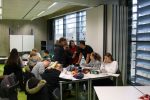 Am Samstag, den 1. Dezember, war es wieder so weit und wir veranstalteten unseren jährlichen Tag des offenen Unterrichts. Dieser Tag bietet angehenden Fünftklässlern, Schulwechslern, ihren Familien und allen Interessierten die Gelegenheit unsere Schule kennenzulernen und mitzuerleben wie Unterricht bei uns aussieht. Unsere Schulleitung informierte alle Interessierten über die Bildungsschwerpunkte und verschiedenen Bildungsmöglichkeiten unserer Schule. In diesem Rahmen gab es für die Eltern die Gelegenheit gezielt Nachfragen bezüglich aller Bildungsgänge zu stellen und individuelle Beratung wahrzunehmen. Darüber hinaus stellten sich die Schülervertretung, der Schulelternbeirat, der Förderverein, die Schulsozialarbeiter, der Schulsanitätsdienst, die familienfreundliche Schule und die gesunde Schule vor und informierten die Besucher über ihre Aufgaben und Vorhaben. Darüber hinaus wurden schulzweigübergreifende Projekte präsentiert, wie beispielsweiße Schule ohne Rassismus, das U-Cube Projekt und der Achterbahnwettbewerb. Zudem erhielten die Besucher einen Überblick der sprachlichen Fächer: Neben vielerlei Informationen über den Spanisch- und Französischaustausch, die jahrgangsübergreifende Englandfahrt und das Cambridge Certificate, welches an unserer Schule erworben werden kann, boten die Sprachen auch Schnupperstunden an, um einen Einblick in den Fremdsprachenunterricht zu gewähren. Auch die Musiker unter uns zogen die Aufmerksamkeit vieler Besucher auf sich: Die Bläserklassen boten eine Schnupperstunde an und die Rockband öffnete die Türen für eine Bandprobe. Darüber hinaus freuten sich alle Schülerinnen und Schüler gemeinsam mit ihren Lehrerinnen und Lehrern ihre aktuellen Unterrichtsvorhaben vorzustellen und boten einen vielfältigen Einblick in unser Schulleben: Die Science-Klassen vereinfachten komplexe naturwissenschaftliche Vorgänge durch einfache Experimente, es wurde angeregt, sich kritisch mit der Wirtschaft, der Zeitung und der Mode auseinanderzusetzen, Lebensläufe und Bewerbungen wurden auf Englisch formuliert, diverse Präsentationen und Buchvorstellungen gehalten, allerhand Kunstprojekte präsentiert, die letzten Vorbereitungen für den Mathematikwettbewerb getroffen, köstliches Essen wurde professionell in der Lehrküche gezaubert und die Sportler zeigten ihr Können im Hochsprung. Diese und viele weitere tolle Einblicke in unseren Schulalltag, zeigten wie anschaulich Lernen gestaltet werden kann und wie viel Spaß man dabei haben kann. Für das leibliche Wohl war ebenfalls bestens gesorgt: Die Mensa und das Schülercafé umsorgten die Gäste mit einem Mittagessen und Snacks und auch die Schülerinnen und Schüler der Q1 und Q3 organisierten Snacks, Getränke, Kaffee und Kuchen. Zusätzlich gab es auch eine Kinderbetreuung, die unsere jüngsten Besucher in Empfang nahm. Es war ein gelungener Vormittag, der einen vielfältigen Einblick in unser modernes Schulleben bot und einen Überblick über die vielfältigen kooperativen Lernmethoden gewährleistete, die wir tagtäglich in unserem Unterricht einsetzen.