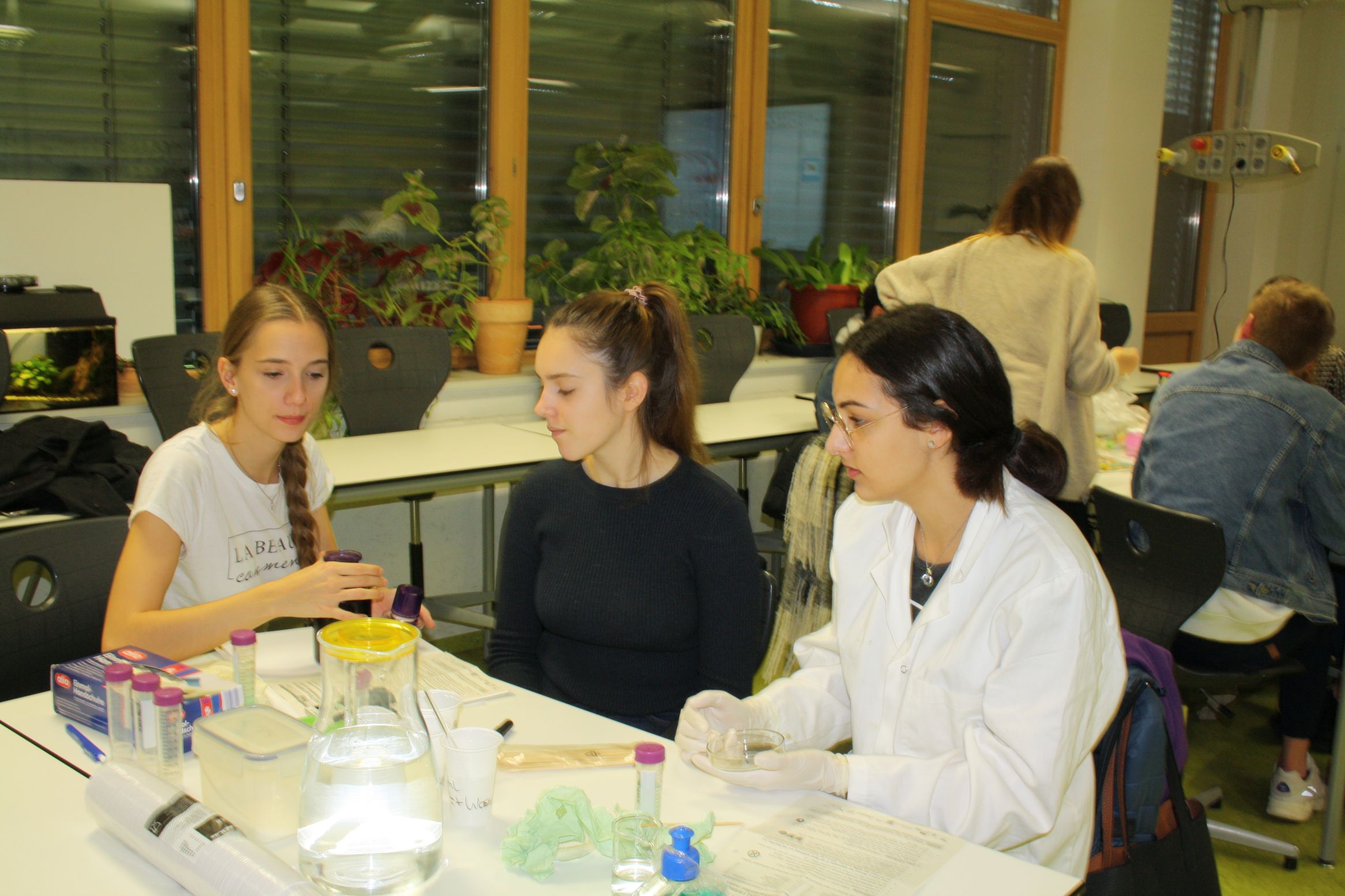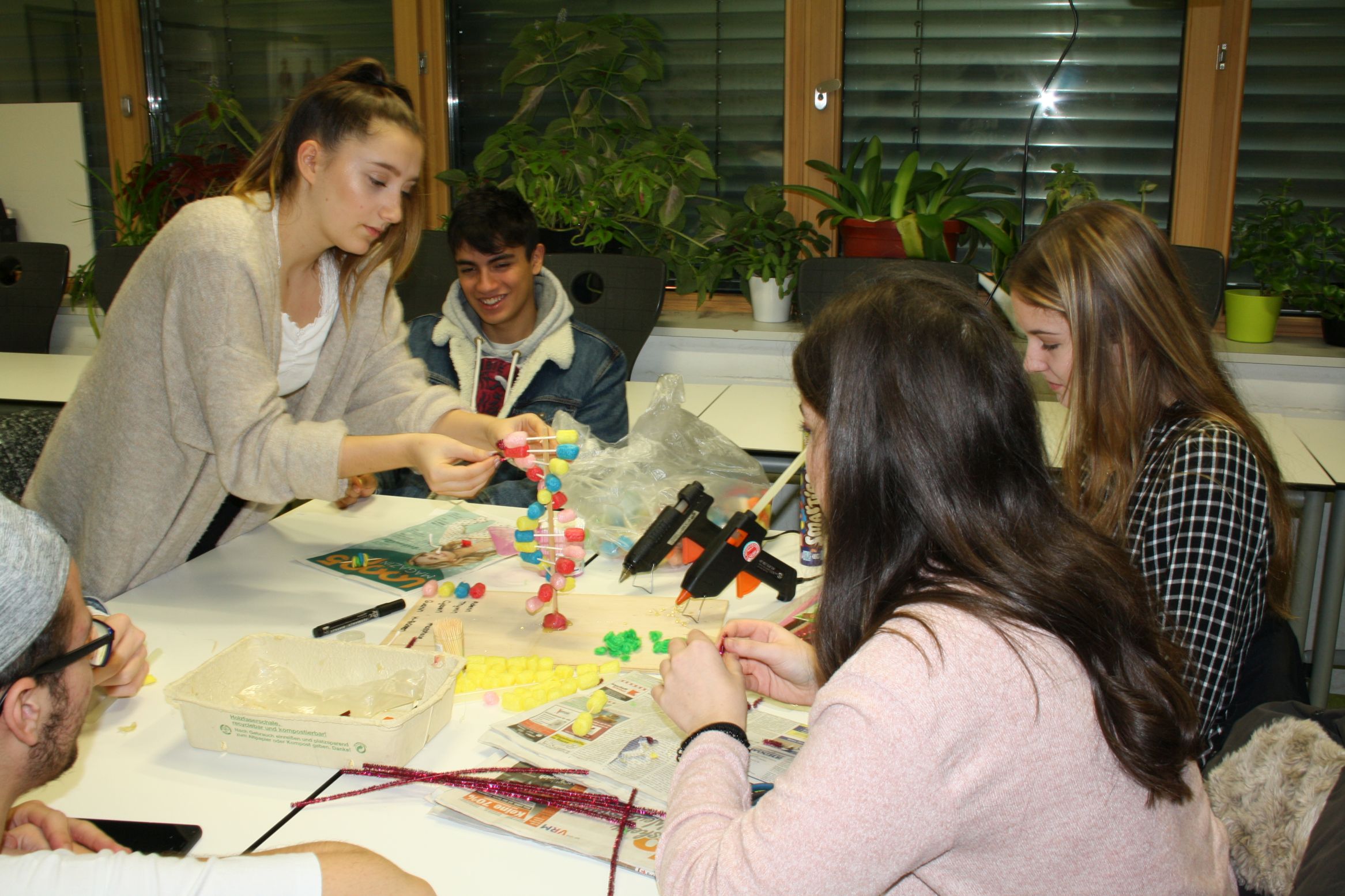 Am Samstag, den 1. Dezember, war es wieder so weit und wir veranstalteten unseren jährlichen Tag des offenen Unterrichts. Dieser Tag bietet angehenden Fünftklässlern, Schulwechslern, ihren Familien und allen Interessierten die Gelegenheit unsere Schule kennenzulernen und mitzuerleben wie Unterricht bei uns aussieht. Unsere Schulleitung informierte alle Interessierten über die Bildungsschwerpunkte und verschiedenen Bildungsmöglichkeiten unserer Schule. In diesem Rahmen gab es für die Eltern die Gelegenheit gezielt Nachfragen bezüglich aller Bildungsgänge zu stellen und individuelle Beratung wahrzunehmen. Darüber hinaus stellten sich die Schülervertretung, der Schulelternbeirat, der Förderverein, die Schulsozialarbeiter, der Schulsanitätsdienst, die familienfreundliche Schule und die gesunde Schule vor und informierten die Besucher über ihre Aufgaben und Vorhaben. Darüber hinaus wurden schulzweigübergreifende Projekte präsentiert, wie beispielsweiße Schule ohne Rassismus, das U-Cube Projekt und der Achterbahnwettbewerb. Zudem erhielten die Besucher einen Überblick der sprachlichen Fächer: Neben vielerlei Informationen über den Spanisch- und Französischaustausch, die jahrgangsübergreifende Englandfahrt und das Cambridge Certificate, welches an unserer Schule erworben werden kann, boten die Sprachen auch Schnupperstunden an, um einen Einblick in den Fremdsprachenunterricht zu gewähren. Auch die Musiker unter uns zogen die Aufmerksamkeit vieler Besucher auf sich: Die Bläserklassen boten eine Schnupperstunde an und die Rockband öffnete die Türen für eine Bandprobe. Darüber hinaus freuten sich alle Schülerinnen und Schüler gemeinsam mit ihren Lehrerinnen und Lehrern ihre aktuellen Unterrichtsvorhaben vorzustellen und boten einen vielfältigen Einblick in unser Schulleben: Die Science-Klassen vereinfachten komplexe naturwissenschaftliche Vorgänge durch einfache Experimente, es wurde angeregt, sich kritisch mit der Wirtschaft, der Zeitung und der Mode auseinanderzusetzen, Lebensläufe und Bewerbungen wurden auf Englisch formuliert, diverse Präsentationen und Buchvorstellungen gehalten, allerhand Kunstprojekte präsentiert, die letzten Vorbereitungen für den Mathematikwettbewerb getroffen, köstliches Essen wurde professionell in der Lehrküche gezaubert und die Sportler zeigten ihr Können im Hochsprung. Diese und viele weitere tolle Einblicke in unseren Schulalltag, zeigten wie anschaulich Lernen gestaltet werden kann und wie viel Spaß man dabei haben kann. Für das leibliche Wohl war ebenfalls bestens gesorgt: Die Mensa und das Schülercafé umsorgten die Gäste mit einem Mittagessen und Snacks und auch die Schülerinnen und Schüler der Q1 und Q3 organisierten Snacks, Getränke, Kaffee und Kuchen. Zusätzlich gab es auch eine Kinderbetreuung, die unsere jüngsten Besucher in Empfang nahm. Es war ein gelungener Vormittag, der einen vielfältigen Einblick in unser modernes Schulleben bot und einen Überblick über die vielfältigen kooperativen Lernmethoden gewährleistete, die wir tagtäglich in unserem Unterricht einsetzen.