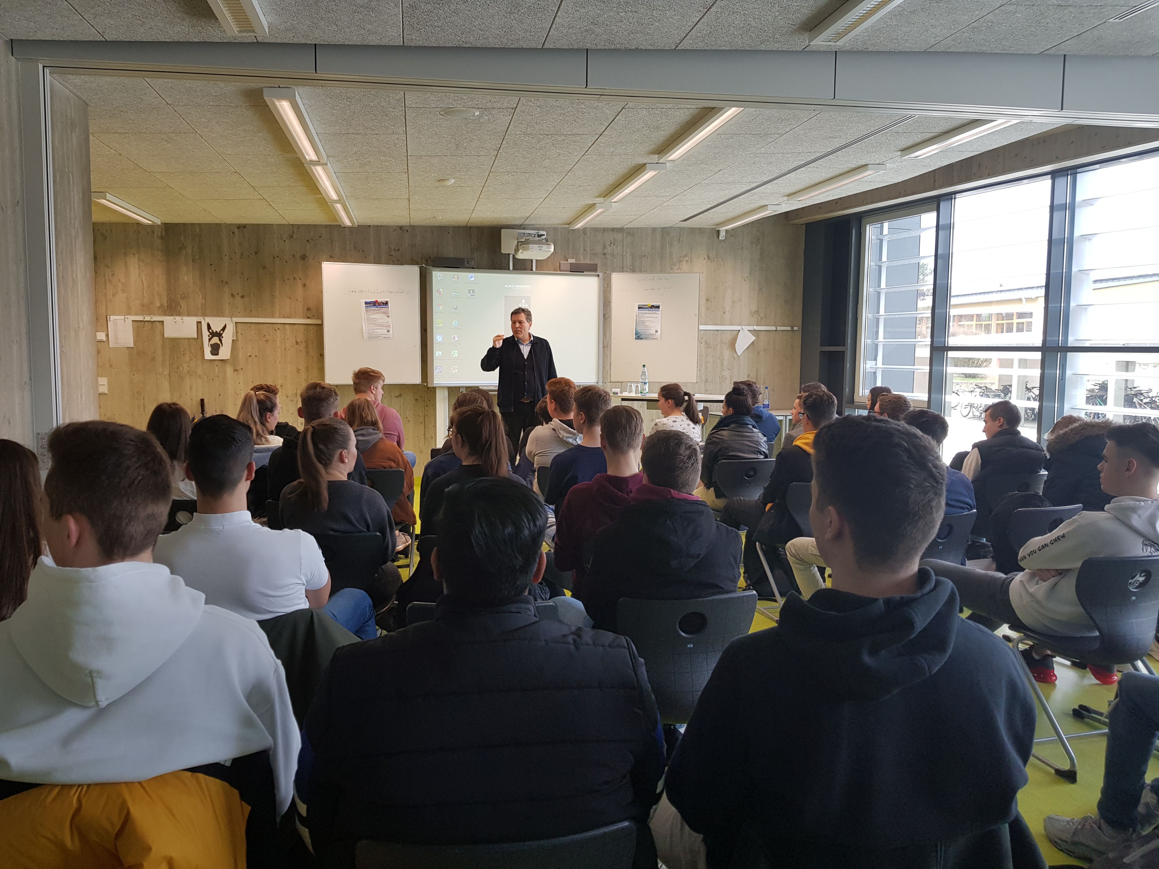Am Freitag, den 08.03.2019, fand an der GHS eine Informationsveranstaltung im Rahmen der Berufs- und Studienorientierung statt. Der Bürgermeister der Stadt Griesheim, Herr Krebs-Wetzel, stellte dabei die aktuellen Ausbildungsplatz- und Studienplatzangebote vor.