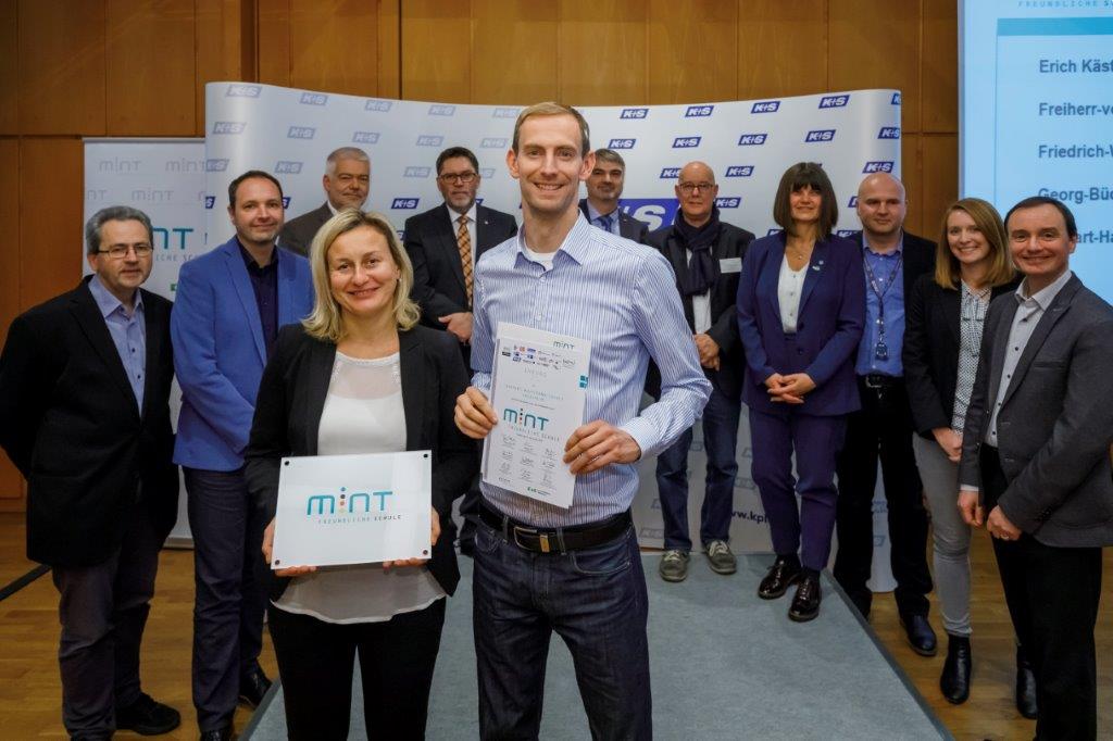 Die Gerhart-Hauptmann-Schule in Griesheim wurde, neben zwei Darmstädter Gymnasien, erneut als „MINT-freundliche Schule“ ausgezeichnet. Frau Ayles und Herr Clippard als MINT-Koordinatoren der Schule nahmen die Auszeichnung entgegen und freuen sich, dass die sehr umfassende MINT-Förderung an ihrer Schule wiederholt anerkannt wird.