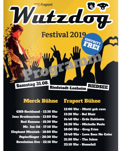 GHS Rockband spielt beim Wutzdog Festival! Publiziert 23. August 2019 Beim Wutzdogfestival in Leeheim am Riedsee spielt die Schulband am 31.08.2019 in der Zeit von 12.30 bis 13 Uhr auf der Merck- Bühne.