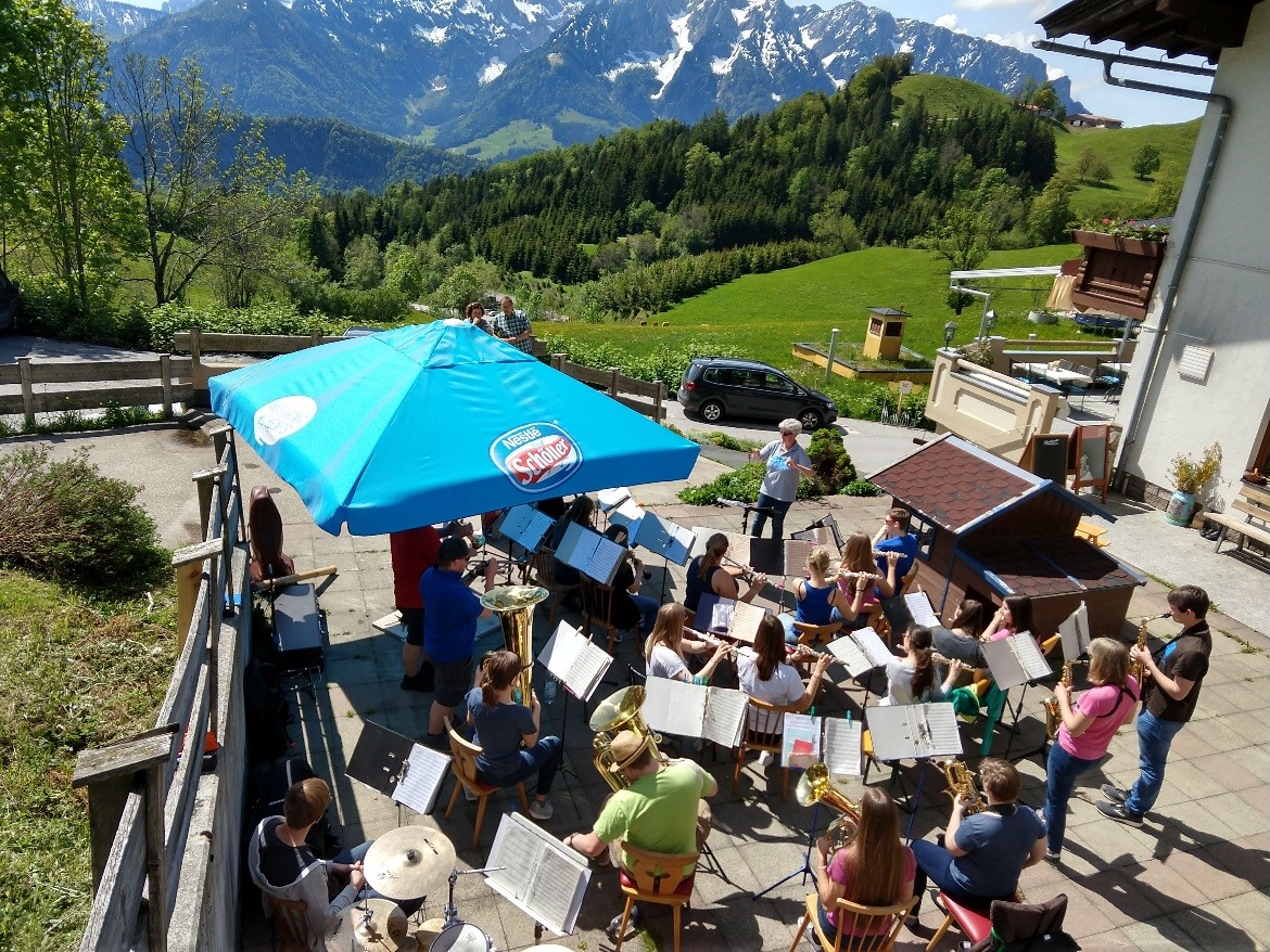Am Samstag spielten wir bei strahlender Sonne im Berggasthof Briggl den dort ankommenden Wanderern und Feriengästen auf.