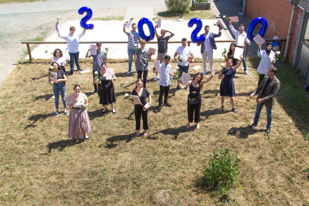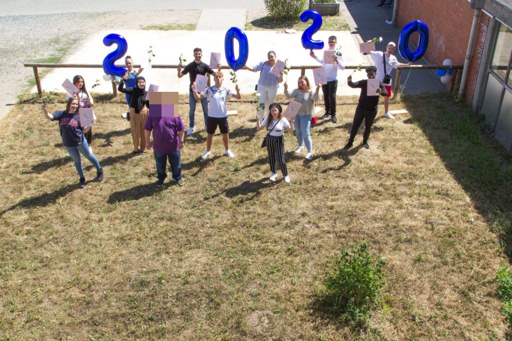 In kleinen Gruppen und zeitversetzt durften zuerst die Haupt- und Realschülerinnen und Schüler mit jeweils zwei Familienmitgliedern den feierlich geschmückten Schulhof zu ihrer Lieblingsmusik betreten. Es erwarteten sie sehr persönliche und ermutigende Worte ihrer Klassenlehrkräfte, Zweigleiterinnen Frau Bessels und Frau Höch und Schulleiterin Frau Muthmann. Anschließend genossen alle Absolventen ihren ganz besonderen Moment, indem sie einzeln nach vorne traten um ihr Abschlusszeugnis und eine Rose, gesponsert von der Gärtnerei Nothnagel in Griesheim, entgegenzunehmen. Daraufhin wurden die Klassenbesten und engagiertesten Schülerinnen und Schüler geehrt, bevor ein letztes Gruppenfoto gemacht wurde.