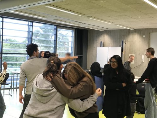 Um noch genauere Einblicke in die Handlung dieses Stückes zu erhalten nahmen wir am 27. und 28. September 2022 an einem interaktiven, zweitägigen Shakespeare-Workshop an unserer Schule teil. Die britischen Schauspieler und Autoren Charlie Dupré und Holly Barnard, die den Workshop leiteten und extra aus Berlin angereist waren, erläuterten uns Dramatik, Sprache und Spielweise des Stückes. Ziel war es am Ende, das gesamte Drama „Othello“ szenisch zu präsentieren und dabei unsere eigenen Vorstellungen mit einfließen zu lassen.