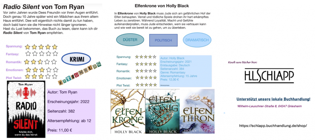 Für den Rest des Schuljahres möchten wir z.B. einen Podcast selbst aufnehmen und viele weitere Buchempfehlungen geben.