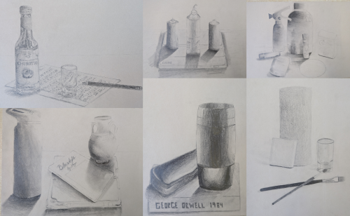 - „Stilllebenzeichnungen“, Bleistift auf Karton, G10d