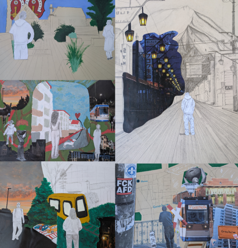 - „Ich und meine Stadt” – Collage, Malerei & Zeichnung auf Karton, GK Q1