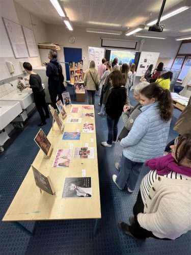 Der Leistungskurs Kunst (Q4) unter Leitung von Fr. Bova zeigte im F-Block eine Ausstellung praktischer Arbeiten (Malerei, Fotografie, Zeichnung & Projektdokumentationen), die im Verlauf der Halbjahre Q1 bis Q4 entstanden sind. Die Werke zeigten eindrucksvoll die kreative Entwicklung der Schülerinnen und luden zum Entdecken und Austausch ein. Ein besonderer Programmpunkt des Abends war die Performance des Grundkurses Darstellendes Spiel (Q4), die unter Leitung von Fr. Silke Neumann in Kooperation mit Nadja Soukup des Theaterlabor Inc. aus Darmstadt entwickelt wurde. Unter dem Titel „Die Weber 2.0 – Spiel des Überlebens“ zeigten die PerformerInnen eine moderne Interpretation, die das Publikum mit ihrer Intensität und Aktualität in den Bann zog.